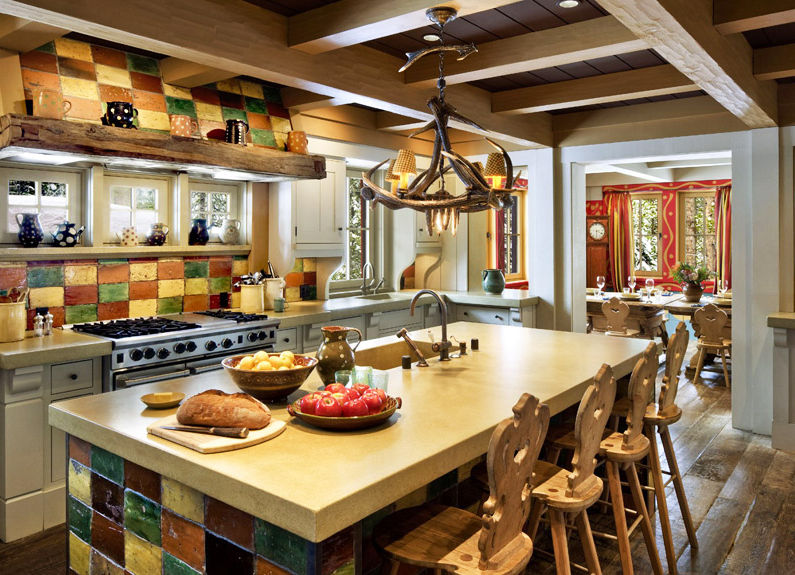 Кухонные аксессуары также допускаются только из натуральных материалов – расписная посуда из дерева и керамики, скатерти и салфетки из льна, вафельные полотенца.